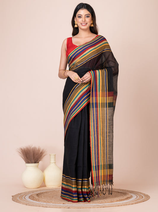 Bhujodi Kala Black Base Handloom Premium Cotton Saree