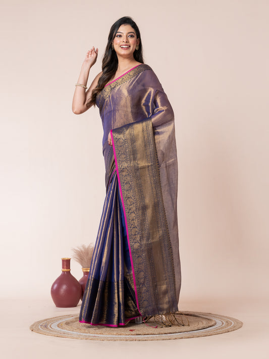 Blue to Green Shade Handloom Bhujodi Mercerized Cotton Saree